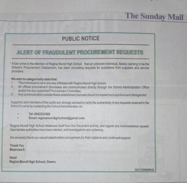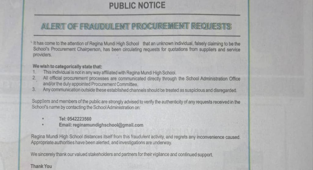 Public Notice: Alert Regarding Fraudulent Procurement Requests
